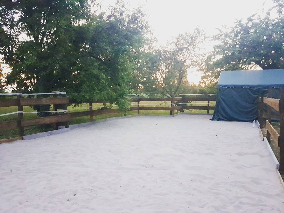 Das Paddock erstrahlte in vollem Glanz und der weiße, gewaschene Rheinsand Körnung 0-2, ließ Urlaubsfeeling aufkommen. Selbst nachdem die Pferde schon Monate auf dem Paddock gelebt hatten und als dann der Stall aufgebaut wurde, war der Paddock noch einladend und absolut in Takt.
