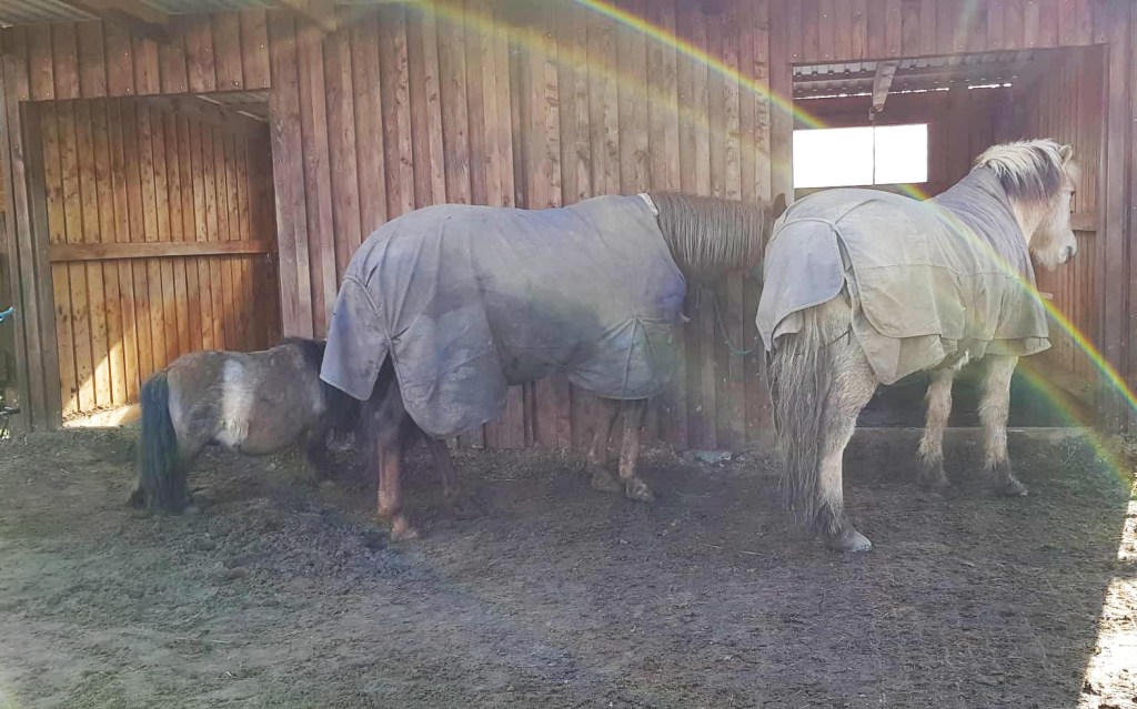 Nachdem alle Pferde behandelt waren, mussten die zwei sedierten Ponys noch ihren Rausch ausschlafen. Eine Stunde später konnten sie aber wieder frei im Paddock umher streifen und auch wieder fressen.