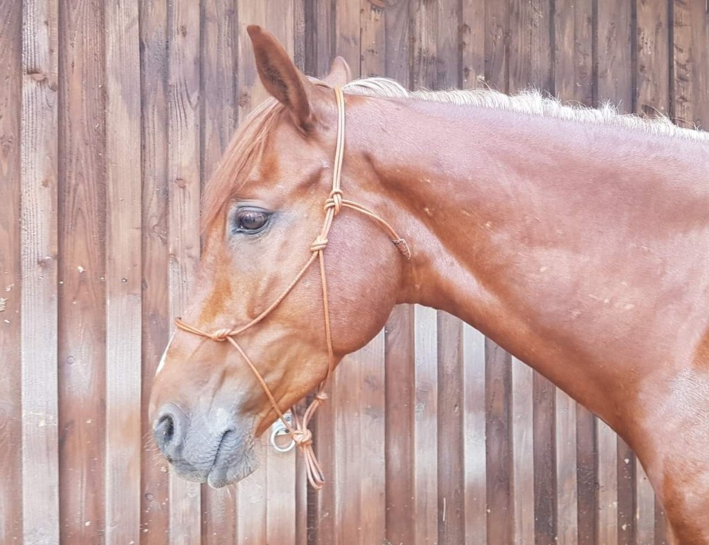 Ich selbst arbeite sehr gerne an 5mm dicken Knotenhalftern, diese können allerdings auch sehr scharf eingesetzt werden und taugen nichts für Anfänger. Auch mag ich persönlich keine Knotenhalfter aus PPE-Seil. Das Nylonseil des Knotis erhitzt sich bei Reibung extrem schnell und ist wie der Nylonstrick für uns, auch für die Pferde nicht angenehm.