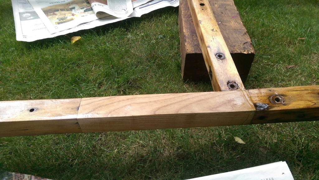 Mich traf fast der Schlag! Die linke Londe war mittig gebrochen. Das Holz hielt nur noch durch ein angeschweißtes und aufgeschraubtes Blech. Schluderlichste Pfuscharbeit und ich hatte es in der Dämmerung auf dem schwarzbraunen Holz mit schwarzem Metallteil nicht gesehen!
