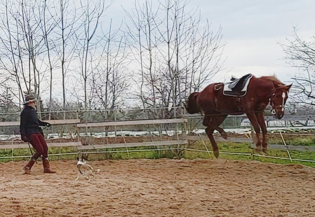 Dazu kam, dass er noch recht verspannt und klemmig im Rücken war und eigentlich nicht mal beim Longieren den Menschen, die Gerte oder Hilfen richtig verstand.