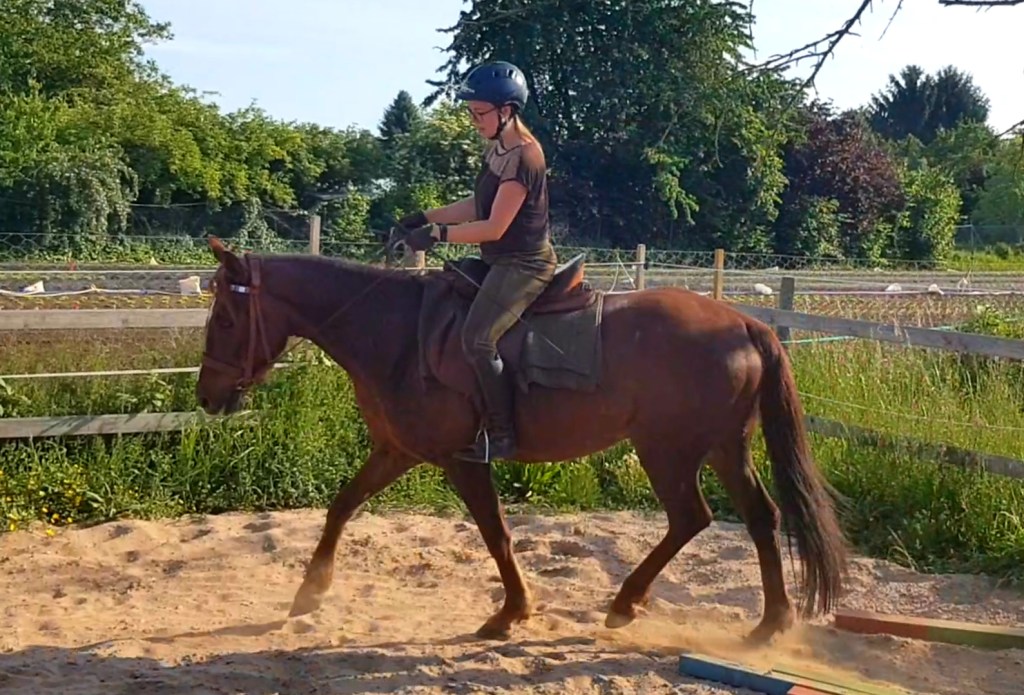 - Man sitzt nah am Pferd, gute Hilfengebung.