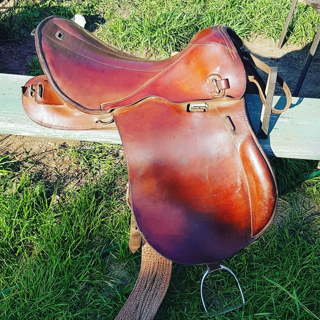 1. Lederbeschaffenheit: am Leder lässt sich auch auf Fotos gut erkennen, in welchem Zustand der Sattel ist. Ein dunkelbrauner Sattel wurde totgefetter. Man sagt, dass zu viel Öl das Leder „verbrennt“ und es dunkel macht. Auch Risse und eine zu helle Lederfarbe sind nicht gut. Das Leder ist zu trocken und hart und spröde geworden. Ein schönes Rotbraun ist genau richtig! Gibt es Löcher? Geflickte Stellen? Wie sehen die Ledernähte aus?