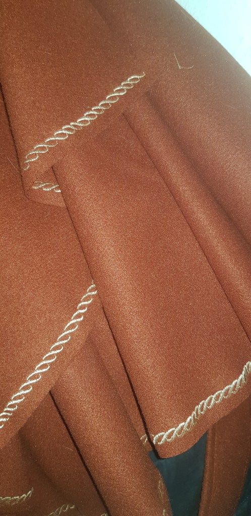 In meinem Fall hat mein Rock eine wunderschöne Stickerei aus goldenem Faden am Saum erhalten. Manche Stoffe muss man unten am Saum auch nochmal umnähen, da sie sonst ausfransen. Wolle und Loden sind da allerdings sehr dankbare Materialien und sparen einem Nähzeit.