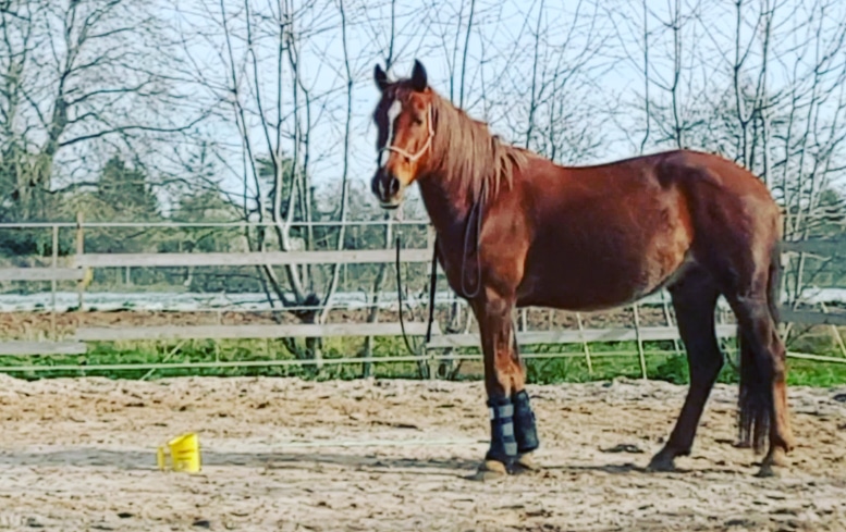 Mein Pony Taki hat eine alte Verletzung am rechten Vorderbein, die er sich damals mit 3 Jahren zugezogen hatte. Die Wunde musste genäht werden und ging bis auf den Knochen hinunter. Gamaschen fallen bei ihm komplett heraus, da die Kanten der Öffnung direkt auf das Narbengewerbe drücken. Jedes Mal zu bandagieren…irgendwann eine Qual.