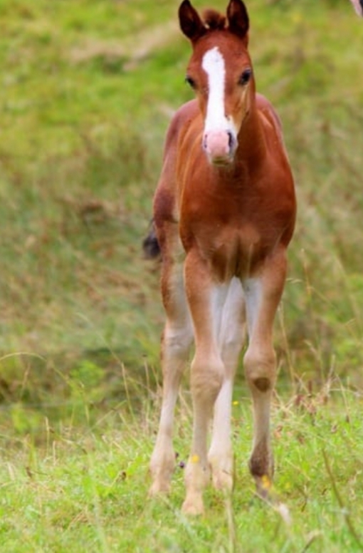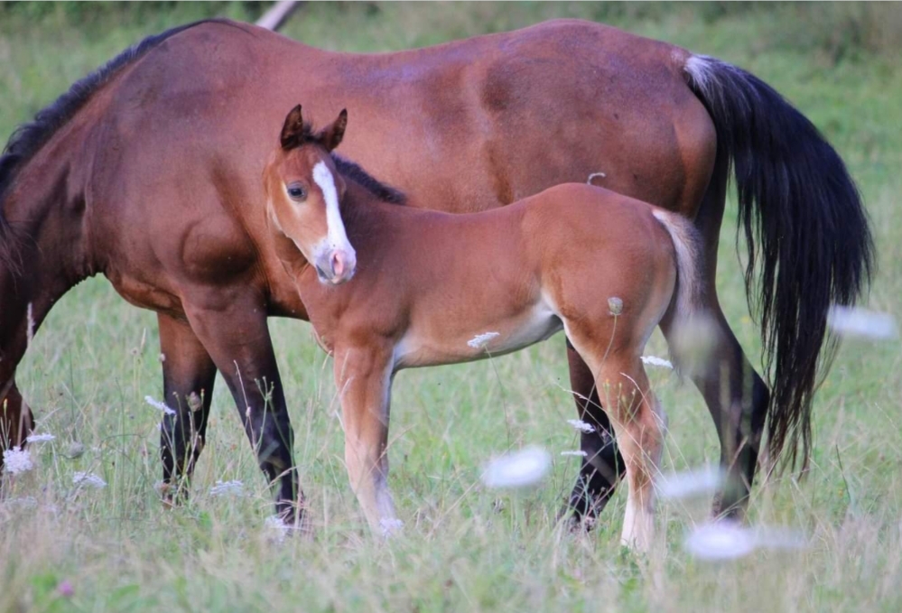 Das nächste Bild sollte dann das Exterieur von der linken Seite zeigen. Perfekt wird ein Pferd präsentiert, wenn die Vorderhand geschlossen steht und die Hinterhand mit dem zum Betrachter hingewannten Hinterbein leicht offen. Notfalls geht es auch komplett geschlossen. Bei Fohlen wie im Beispielbild ist auch das Exterieur der Eltern interessant!