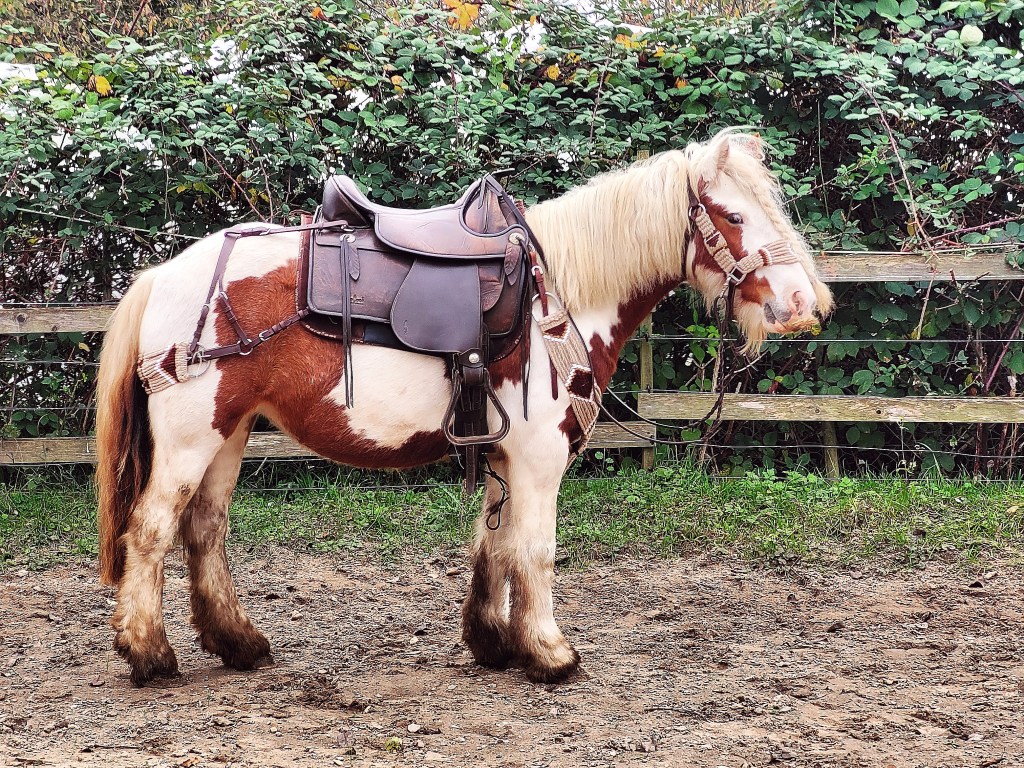 Sowohl von Ghost, als auch von Barefoot habe ich nun ergo ein Westernmodell. Bei Ghost handelt es sich hierbei um einen Ghost Florac mit Horn und Westernskirt. Eine Maßanfertigung in rotbraun und grün, die ich einfach nur wunderschön finde. Der Ghost Westernsattel ist insgesamt 60cm (Größe Piccolo) lang und wiegt 6,5kg inklusive Bügeln etc.. im Roundskirt sind Panels integriert, die aus festem Schaumstoff und anderen Druckverteilenden Materialien bestehen. Diese nicht zu öffnenden Inlays schaffen eine reelle Wirbelsäulenfreiheit und Druckverteilung unter der Steigbügelaufhängung und dem Reiter. Die Polsterung ist wie in den Englischen Kissen von Ghost aufgebaut und ca. 5cm hoch. Ein original polsterbares Pad von Ghost bringt nochmal zusätzliche Gewichtsverteilung und Druckresorbation. Auch im Pad findet sich ein fester, 1,5cm hoher Schaumstoff. In meinem Fall nutze ich Aufschiebfender. Das Horn ist auf dem vorderen Metallbügel (Pommel), der dem Sattel Form und Stabilität gibt, vorne aufgeschraubt und ist nicht zum Festhalten geeignet. Es gibt viel praktisches Zubehör wie z.B. Taschen.