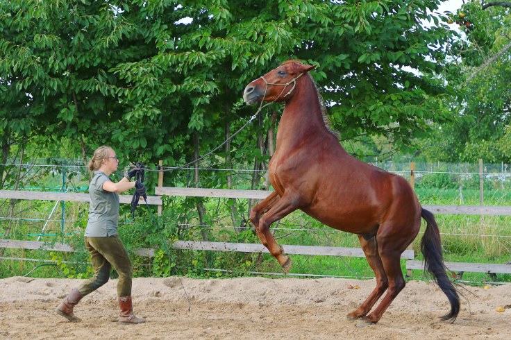 Bei der Ausbildung eines Pferdes geht es mir nicht um das stupide Eintrichtern von Lektionen. Viel mehr möchte ich Pferd und Mensch zusammen bringen, ein unerschütterliches Fundament schaffen, auf dem das Duo dann selbstständig weiter aufbauen kann.