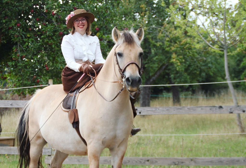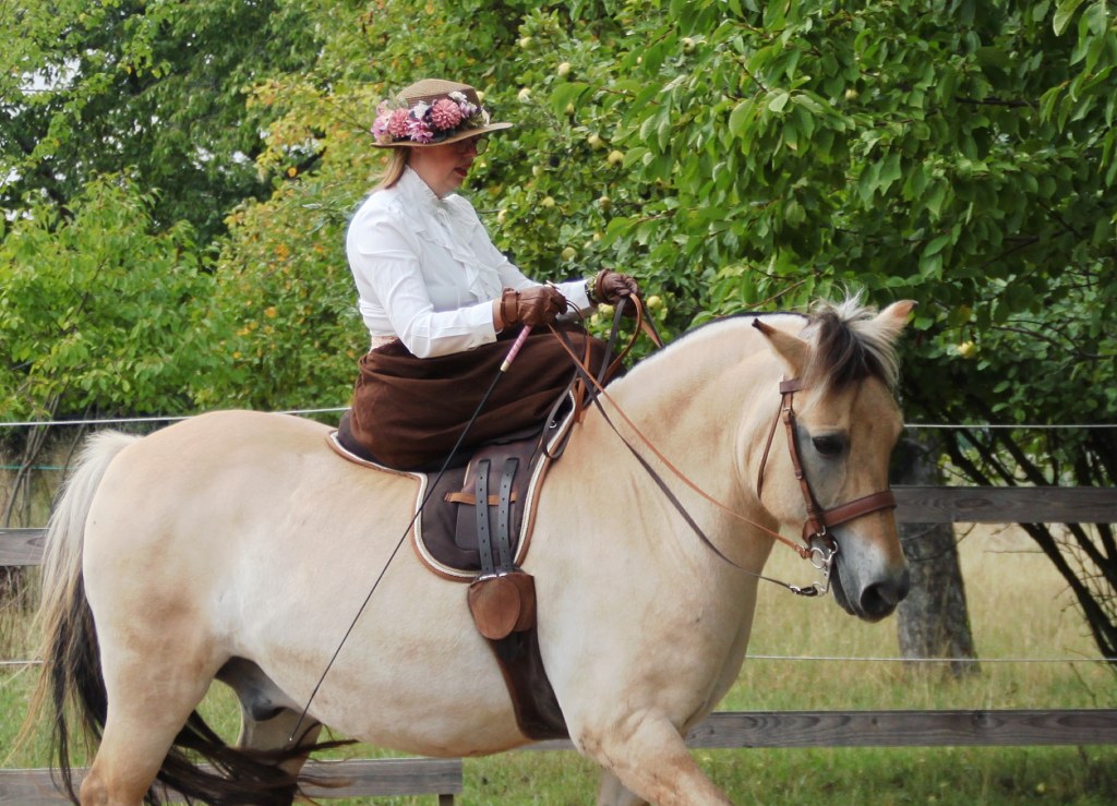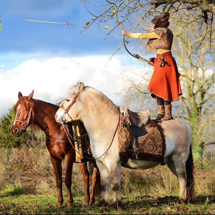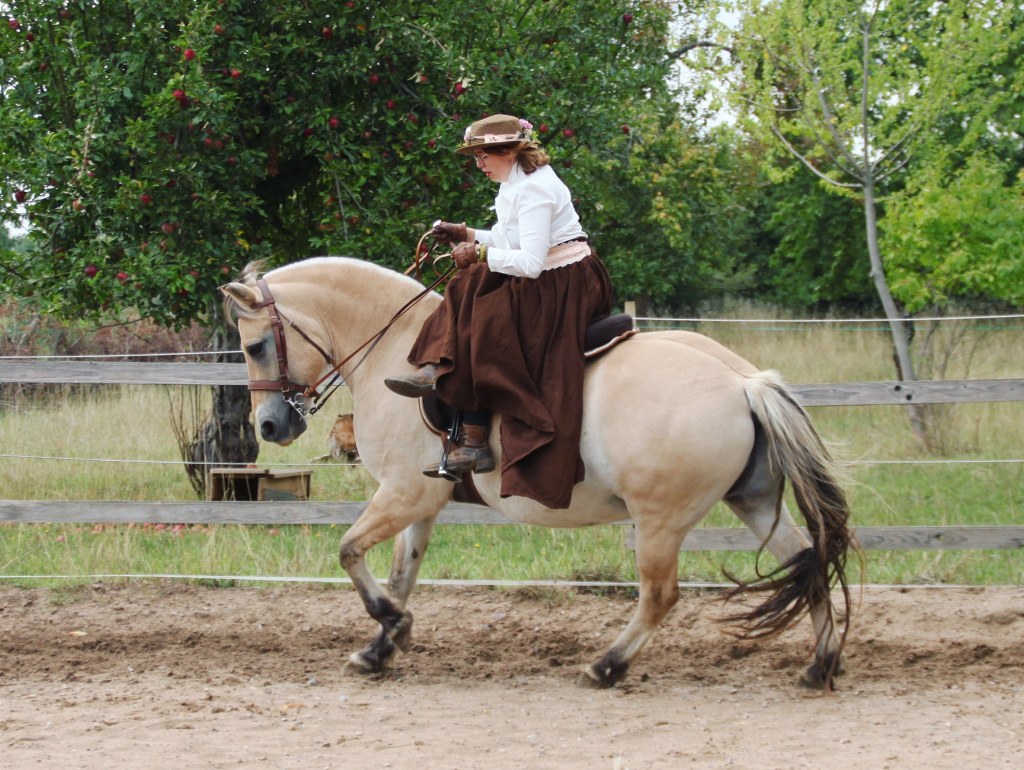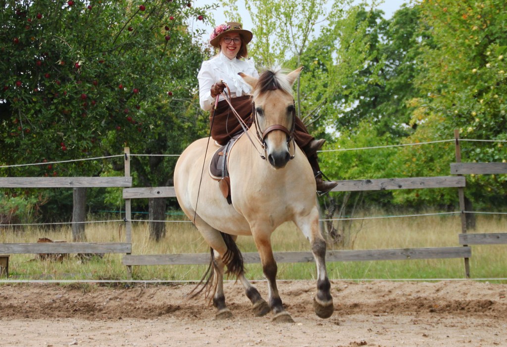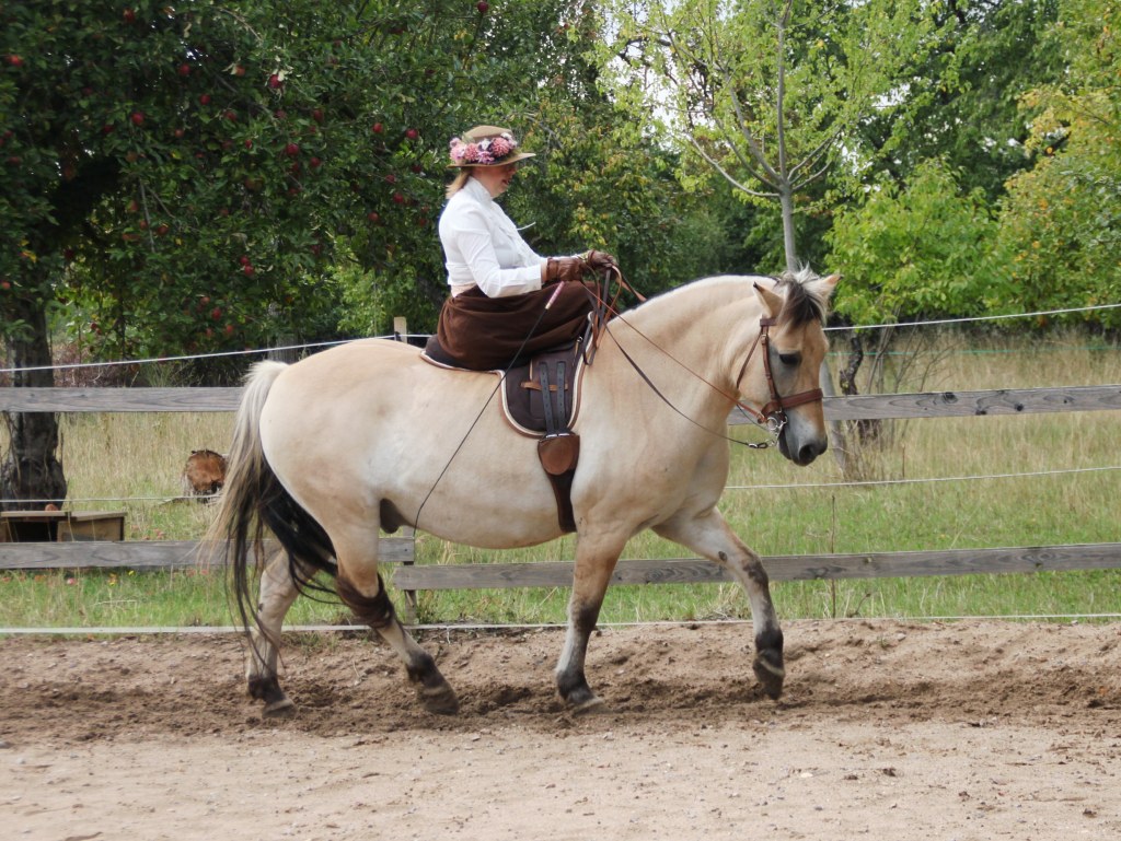 Mit viel Ruhe und durch kleinschrittiges Training fasste die nur 1,30m kleine Tinkerstute schnell Vertrauen und öffnete sich der großen Welt des Lernens. Mittlerweile ist sie bereits solide angeritten. Sie beherrscht einige Zirkustricks und ist sehr zuverlässig im Alltag geworden. Schmied, verladen, Spazieren gehen, nichts schockt sie mehr. Merida ist sehr gut eingefahren und läuft artig im Gelände und auf dem Platz. Sie hat ein absolutes Herz aus Gold und verzaubert jeden mit ihrer grunderlichen und lieben Wesensart.
