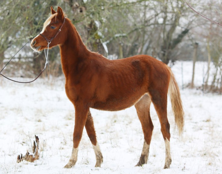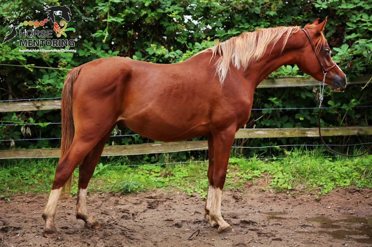 Calypso stieß Anfang 2024 zu unserm Team dazu. Er ist ein 2022 geborener Vollblutaraber, der väterlicherseits auf Padron und Kubinec zurück geht, mütterlicherseits auf Borsalino K, Muscat, Gual Ghorki und Bay el Bey. Er ist ein schlaues und hochsensibles Pferd, das meine größten Träume und Wünsche in sich vereint. Als Schaugezogenes Pferd wird sich zeigen in wie weit wir reiterlich zusammen finden werden. Bis Ende 2024 hat Caly sich bereits gut entwickelt und konnte allerhand Souveränität und innere Ruhe finden. Im Gegensatz zum Anfang, kann er mit Stress besser umgehen und wird nicht mehr panisch.